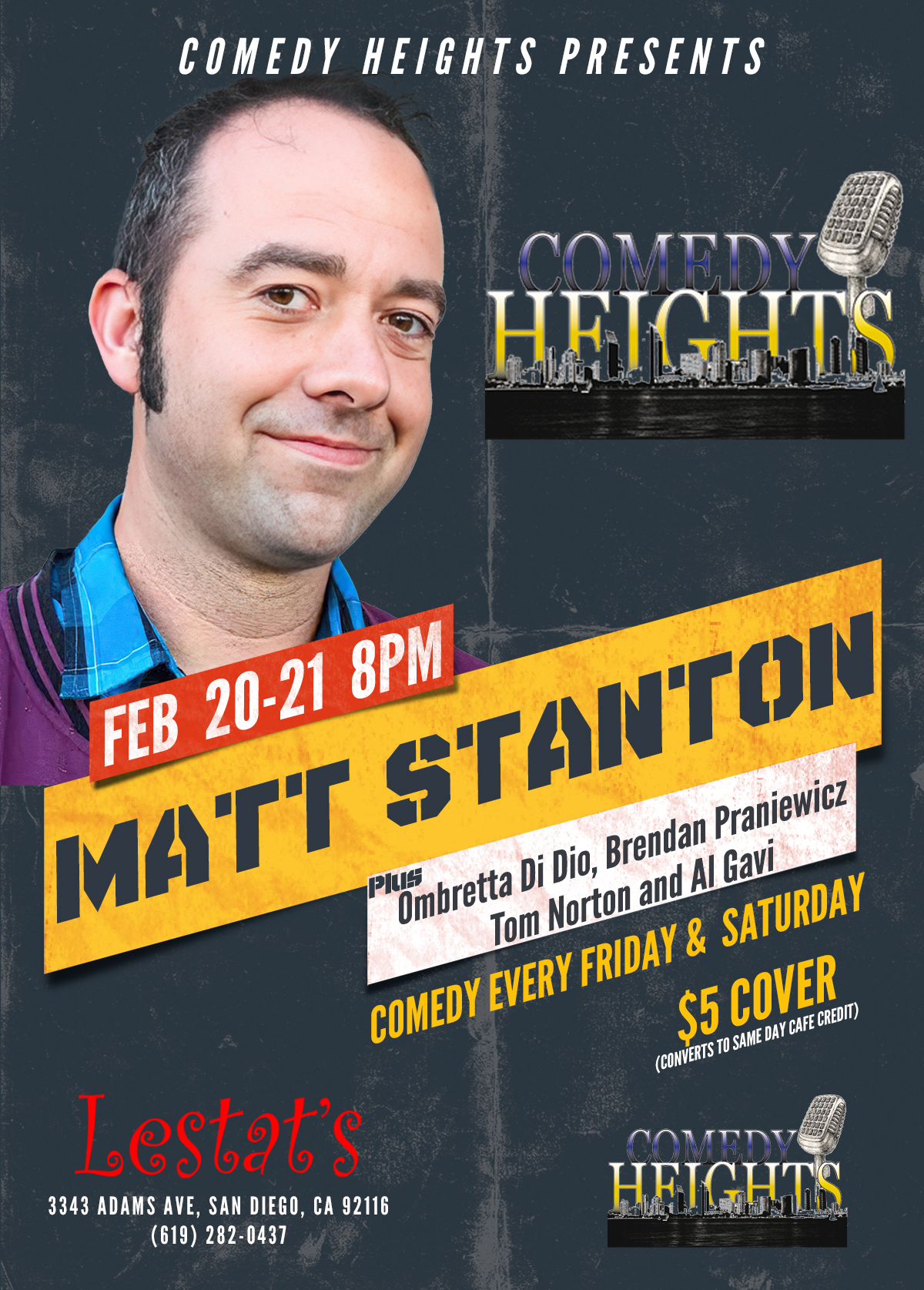 This weekend at Comedy Heights at Lestat’s on Adams Ave. we bring you the hilarious Matt Stanton