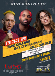 Comedy Heights Producers Al Gavi and Maria Herman are all about clean, clever and really funny comedy. Their weekly Friday and Saturday night comedy shows combine hilarious headliners sporting Comedy Central and HBO credits, with ‘up and coming’ comedians from all over Southern California.